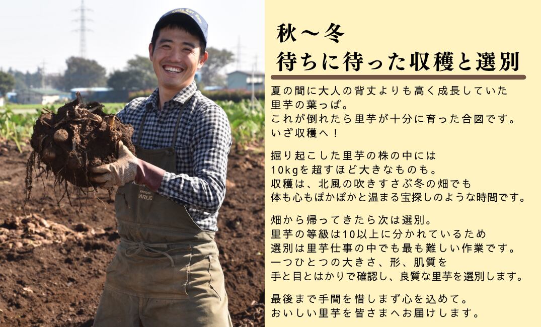 ※里芋は寒さに弱い野菜です。北海道・東北地方へご配送の場合は、配達中に低気温に置かれることで傷みやすくなる場合があります、ご了承の上ご注文ください。